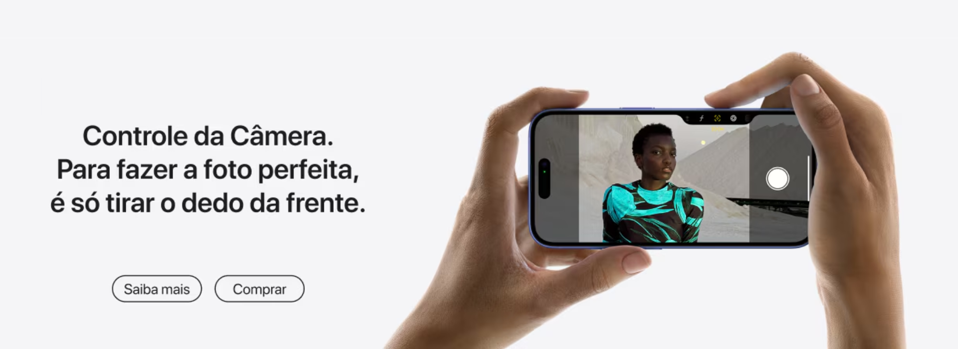 Domine a fotografia móvel com o Controle da Câmera do iPhone 16 Pro Max. Com ele você tem acesso mais fácil e rápido às ferramentas e recursos. É só deslizar o dedo na parte lateral do dispositivo para acessar as funções, como profundidade de campo ou exposição, alternar entre as lentes ou usar o zoom para enquadrar a foto.